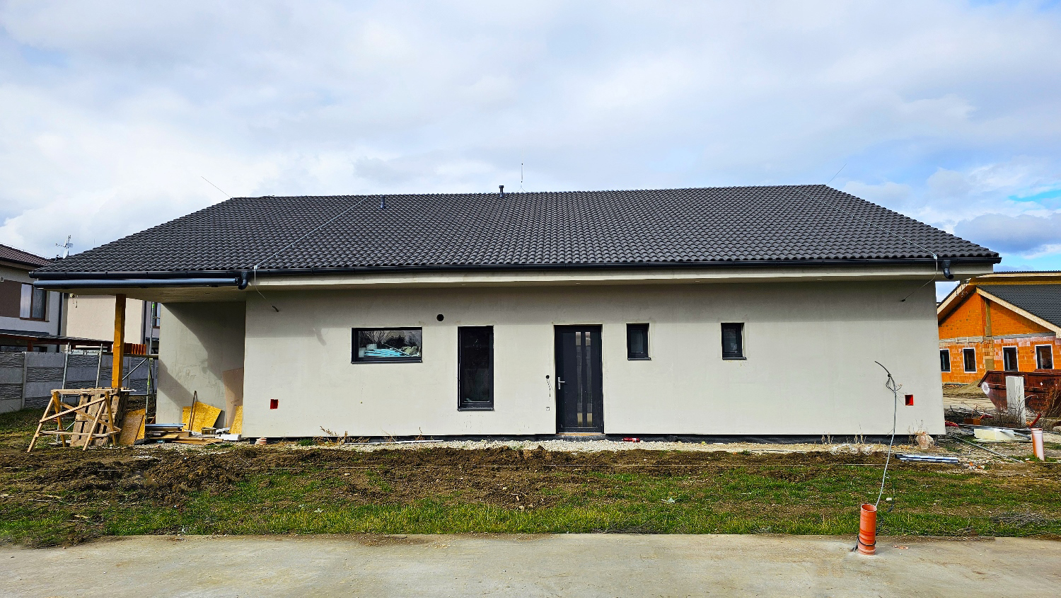Nehnuteľnosť je súčasťou samostatne stojaceho rodinného dvojdomu s dvomi nezávislými bytovými jednotkami, ktoré majú samostatné vstupy i terasy orientované zo vzájomne opačných strán objektu. Bude odovzdávaná v stave dokončenia „holodom“, čo okrem iného zahŕňa: osadené plastové okná s izolačným trojsklom a dvere farby antracit, vonkajšie žalúzie ovládané aj z mobilnej aplikácie, vstupné dvere, namontované teplovodné podlahové vykurovanie s možnosťou regulovania teploty v každej miestnosti, rekuperácia a tepelné čerpadlo, kompletná úprava pozemku, nainštalovaný zavlažovací systém, oplotená väčšina pozemku, funkčné spevnené plochy.