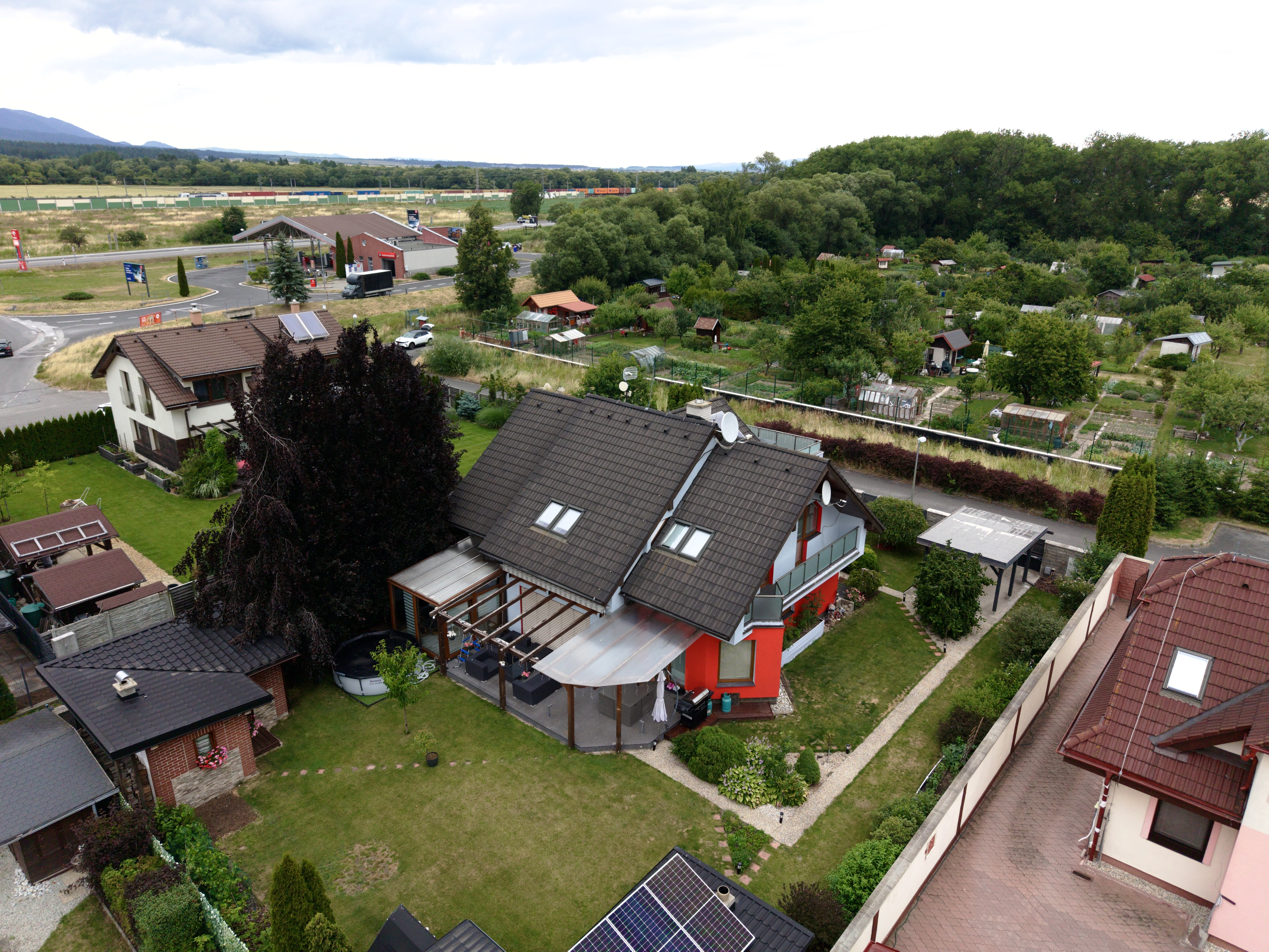 Pohľad na mesto Svit, v pozadí budova spoločnosti Chemosvit aVysoké Tatry