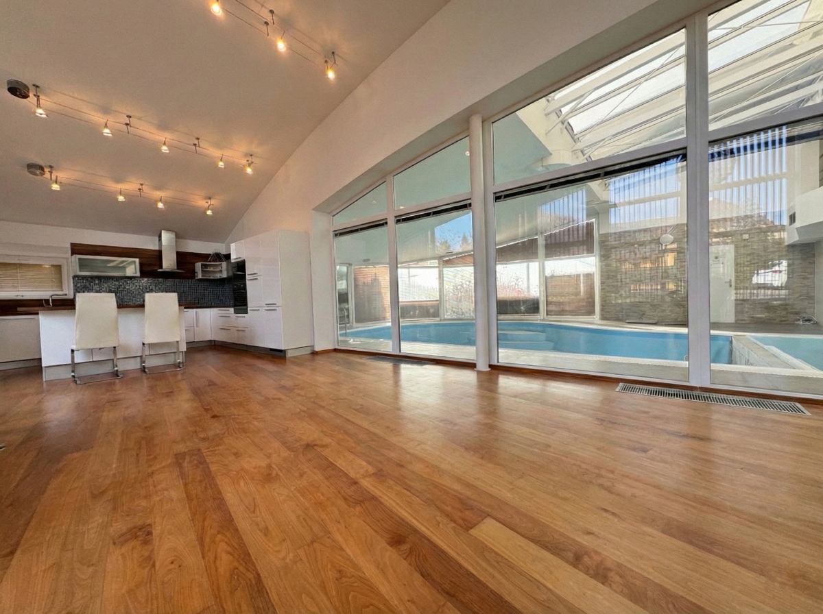 Predstavte si: ráno v bazéne, káva v zimnej záhrade zaliatej svetlom, večer v saune... a to všetko doma. Prístavba z roku 2016 s veľkoformátovým presklením a oblúkovou strešnou konštrukciou stiera hranicu medzi interiérom a exteriérom. Denná zóna, wellness, terasy, balkóny. Dom, v ktorom sa vám dobre žije.