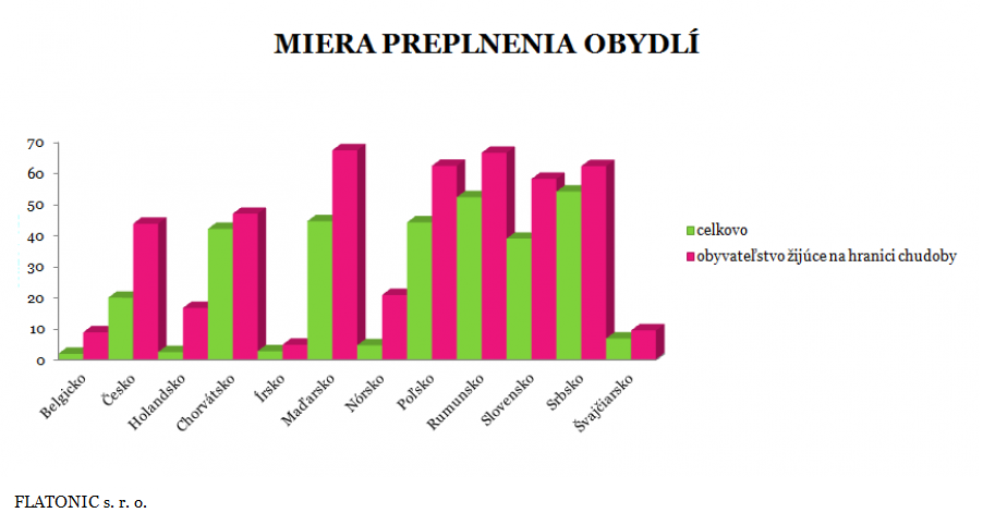 Najvyššie miery preplnenia obydlí spomedzi členských štátov EÚ boli zaznamenané v Rumunsku (52,3 %), Maďarsku (44,6 %), Poľsku (44,2 %), Bulharsku (43,3 %) a Chorvátsku (42,1 %). Najvyššie miery preplnenia obydlí medzi obyvateľmi ohrozenými chudobou boli zaznamenané v Maďarsku (67,4 %), Rumunsku (66,6 %) a Poľsku (62,4 %) a viac ako polovica všetkých osôb ohrozených chudobou na Slovensku a v Bulharsku takisto žije v preplnených obydliach.