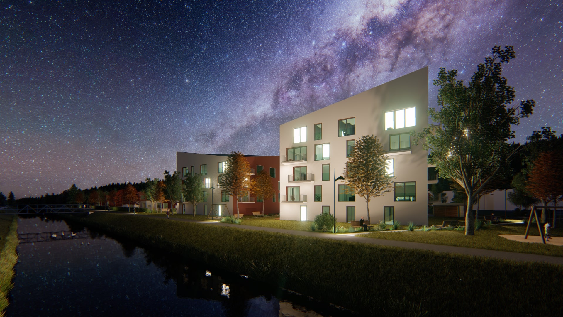 S výstavbou mesta sa začalo podľa územného plánu F.L. Gahuru. Vo výstavbe sa malo pokračovať na severnej strane železničnej trate podľa neskorších urbanistických návrhov, ale z pôvodného zámeru zostalo len torzo – železničná stanica s vitrážou od akademického maliara Vojtecha Stašíka. Neskôr tu vyrástlo sídlisko nielen s fabrikou, ale aj s bytmi, obchodmi, spoločenskými miestnosťami, službami, ba aj s vlastným hospodárstvom v blízkych Batizovciach. Rodinné domy vychádzajú z koncepcií súťaže na zlínske bývanie z roku 1935. Najskôr sa postavili štandardné dvojdomy s plochými strechami, neskôr radové domy so šikmými strechami a nakoniec poschodové bytové domy. Osada sa postupne rozširovala, pribúdali nové domy pre robotníkov. Oficiálne sa osada stále považovala za kolóniu Veľkej, kde sídlil aj notariát, ale ako adresa pre korešpondenciu sa používali Batizovce. Ako prvé boli postavené elektráreň a výskumná stanica, kde mali vyskúšať výrobu umelého hodvábu a kvalitu vody. Časom pribudlo ďalších sedem domov.