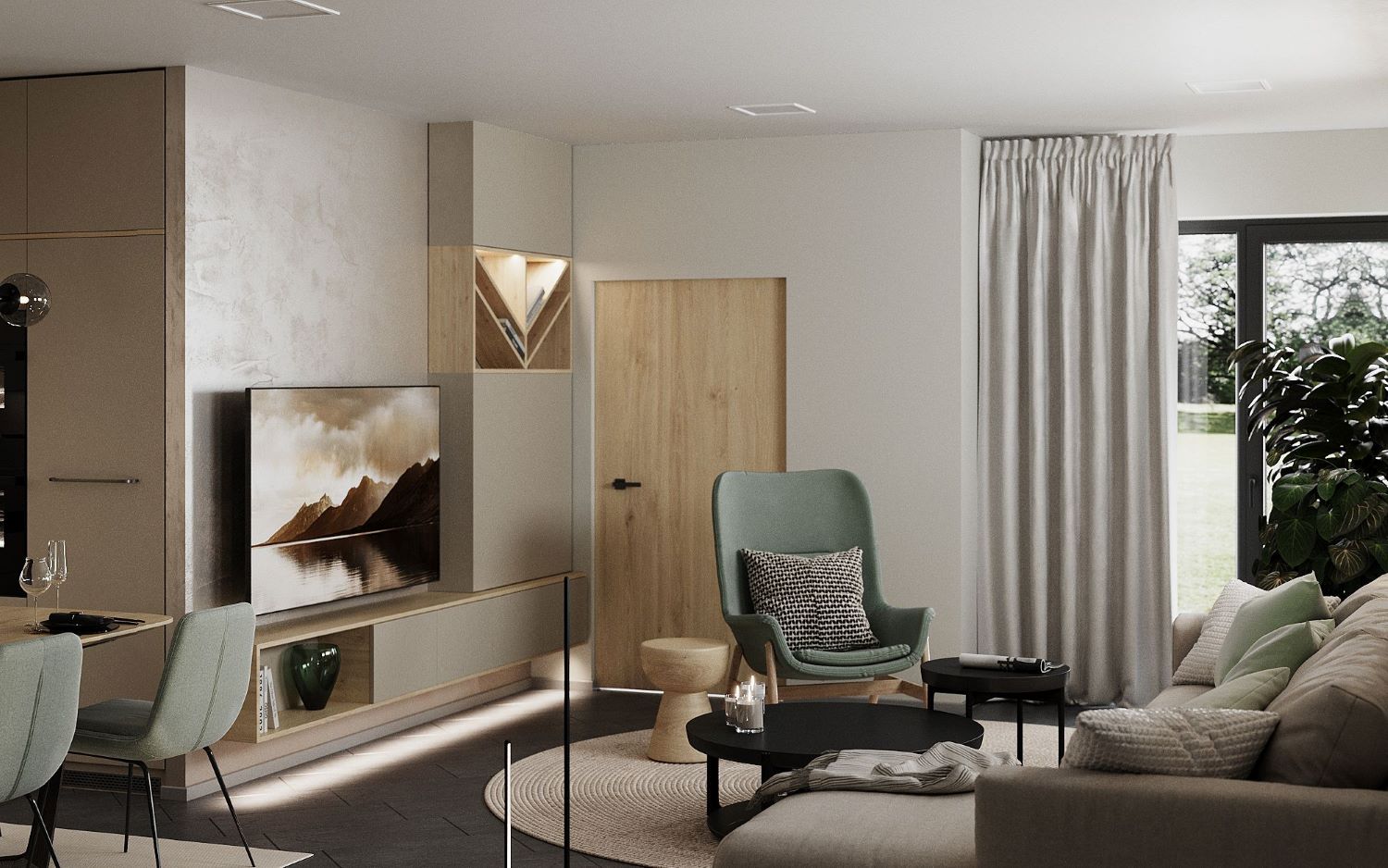 Dom je s ohľadom na čo najlepšiu funkčnosť a komfort dispozične premyslene rozdelený do niekoľkých zón. Hlavný vstup je zo severovýchodu, terasa je orientovaná na severozápad až sever.
