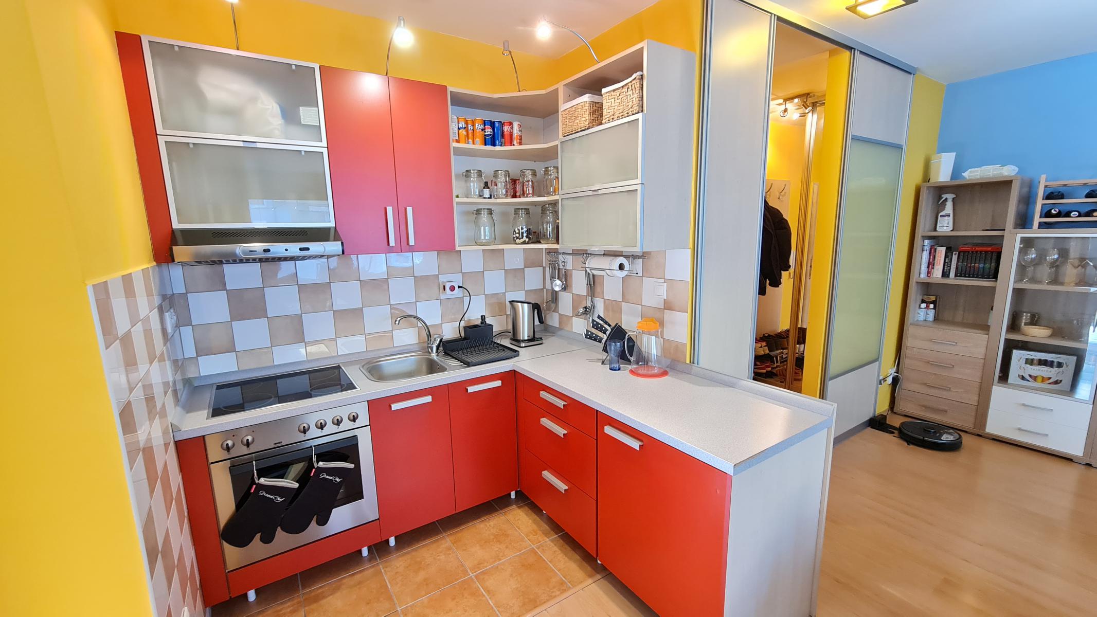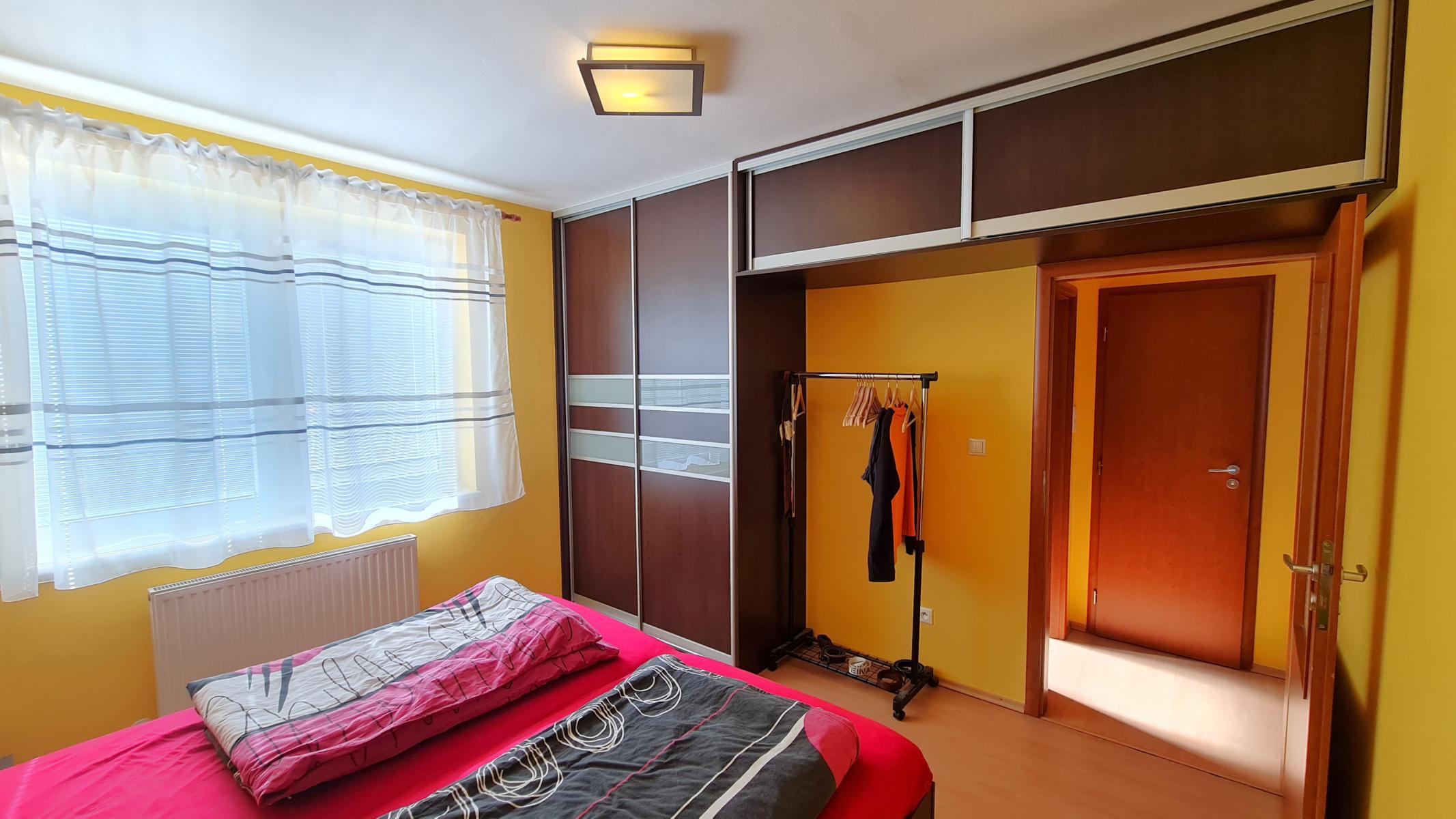 • Úložný priestor: Praktická špajza priamo v kuchyni a vstavaná šatníková skriňa v spálni.