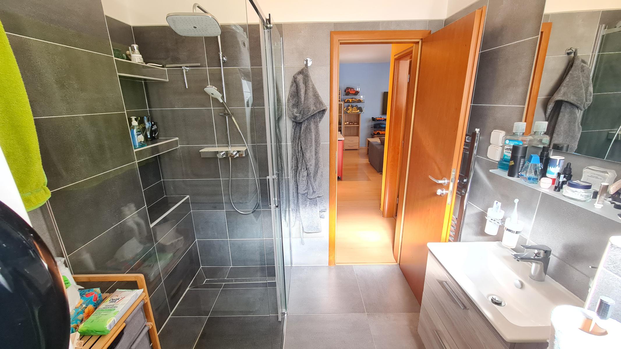 • Kúpeľňa: Disponuje sprchovacím kútom, WC a oknom, čo zabezpečuje prirodzené vetranie.