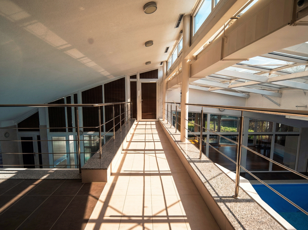 Predstavte si: ráno v bazéne, káva v zimnej záhrade zaliatej svetlom, večer v saune... a to všetko doma. Prístavba z roku 2016 s veľkoformátovým presklením a oblúkovou strešnou konštrukciou stiera hranicu medzi interiérom a exteriérom. Denná zóna, wellness, terasy, balkóny. Dom, v ktorom sa vám dobre žije.